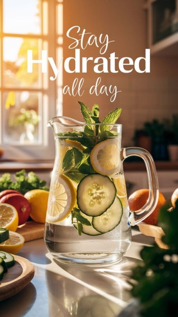 - Use hydrating low-calorie drinks like cucumber-mint water or lemon-infused water for variety.